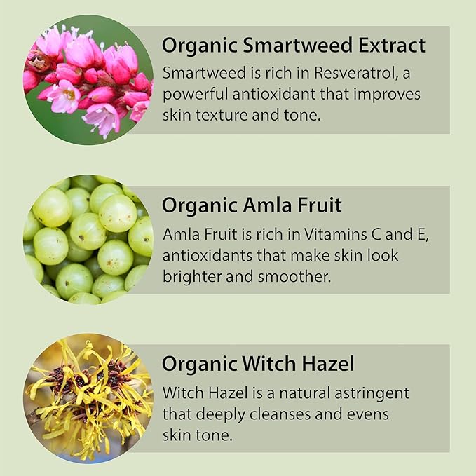- Powerful Antioxidants: Vitamin C from Amla Fruit Extract and Resveratrol from Smartweed Extract combine to improve the appearance of skin texture and tone for a brighter and smoother looking complexion.