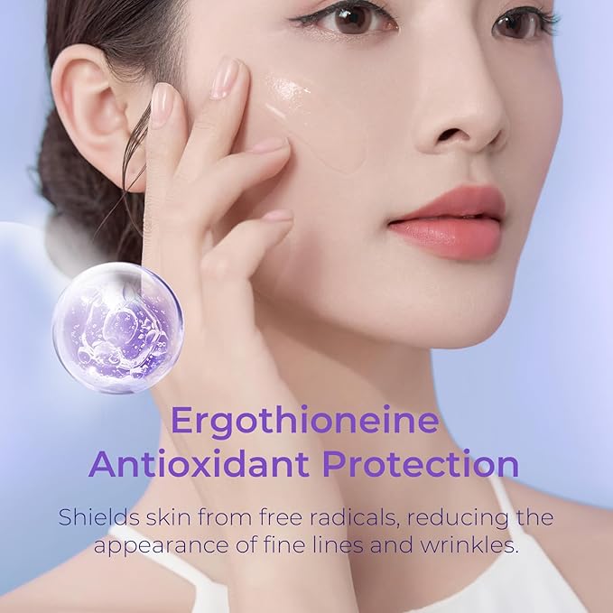 - Fights Signs of Aging: Ergothioneine offers deep antioxidant protection, neutralizing free radicals that cause aging. This ingredient helps reduce wrinkles and maintains skin’s youthful elasticity, giving your skin a firmer, smoother appearance.