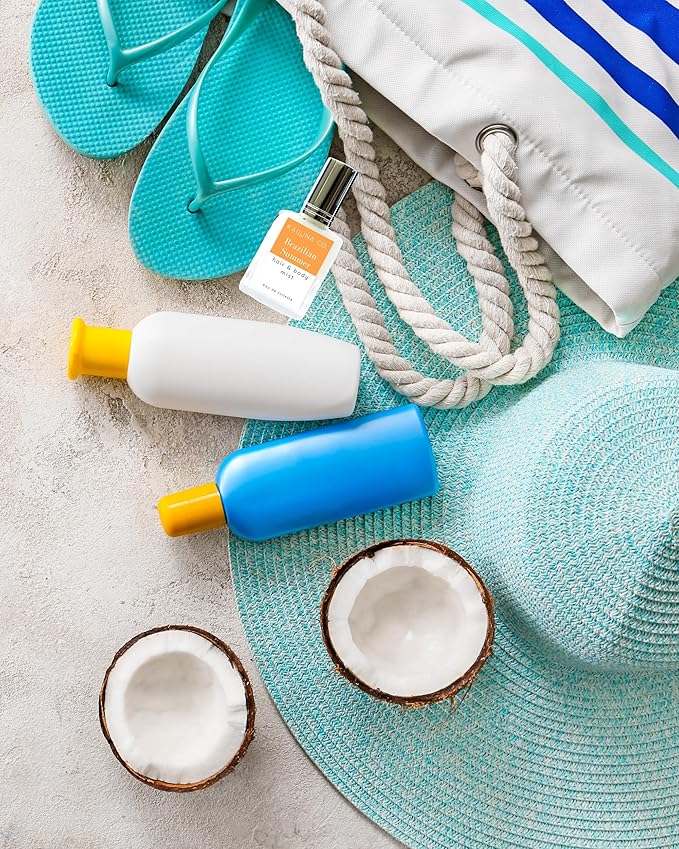 Brazilian Summer Natural Hair & Body Mist Spray Inspired by Bum Bum, Pure Essential and Fragrance Oils, Alcohol-Free, Handmade in California, 0.5Fl Oz