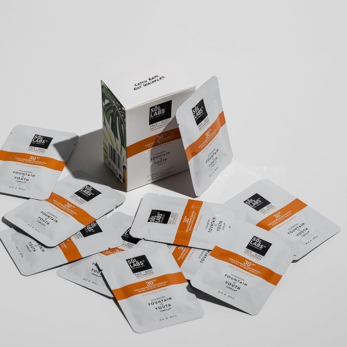 Daily Face and Body Sunscreen SPF 30 | On-The-Go All Natural Mineral, Water Resistant, Reef Safe, Korean Lightweight Formula, No White Cast, Ultra Hydrating, 12 Individual Use Packets