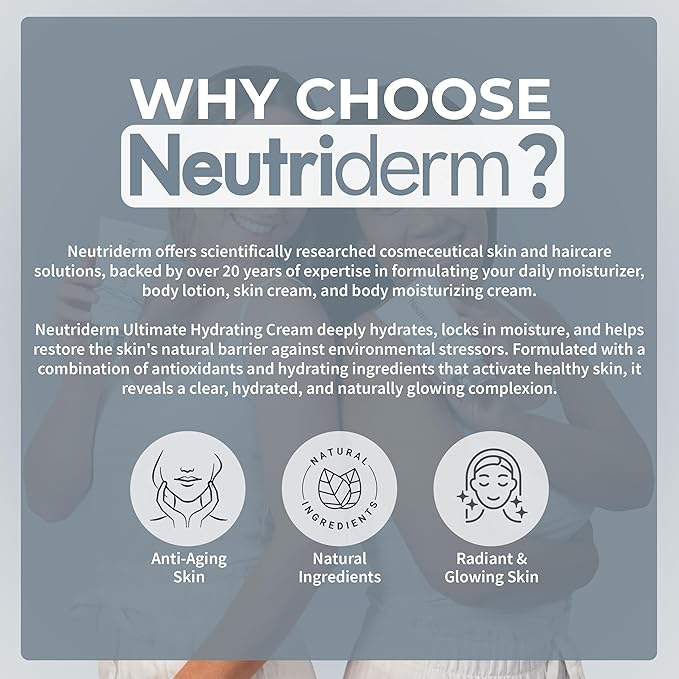 - Intense Hydration & Moisture – Neutriderm Ultra Hydrating Face Cream delivers deep hydration with Vitamin E and Wheat Protein. This lightweight, non-greasy moisturizer locks in moisture for soft, supple, and refreshed skin.