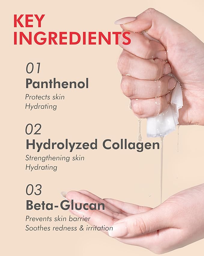 - POWERFUL SKIN NOURISHMENT: Experience the potent combination of hydrolyzed collagen (2,000 ppm), vitamin E, panthenol, and beta-glucan. Together, these ingredients deeply nourish the skin, leaving it soft and resilient against daily stressors.