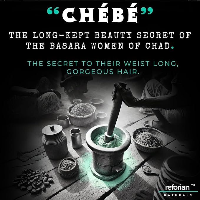 - TRADITIONAL CHADIEN RECIPE Organic Chebe is renowned for its ability to stimulate hair growth by nourishing the scalp and fortifying hair follicles. Chebe is a powerful blend made up mostly of Croton gratissimus seeds and rosemary oil. This traditional blend has been used for thousands of years to help maintain long, healthy hair.