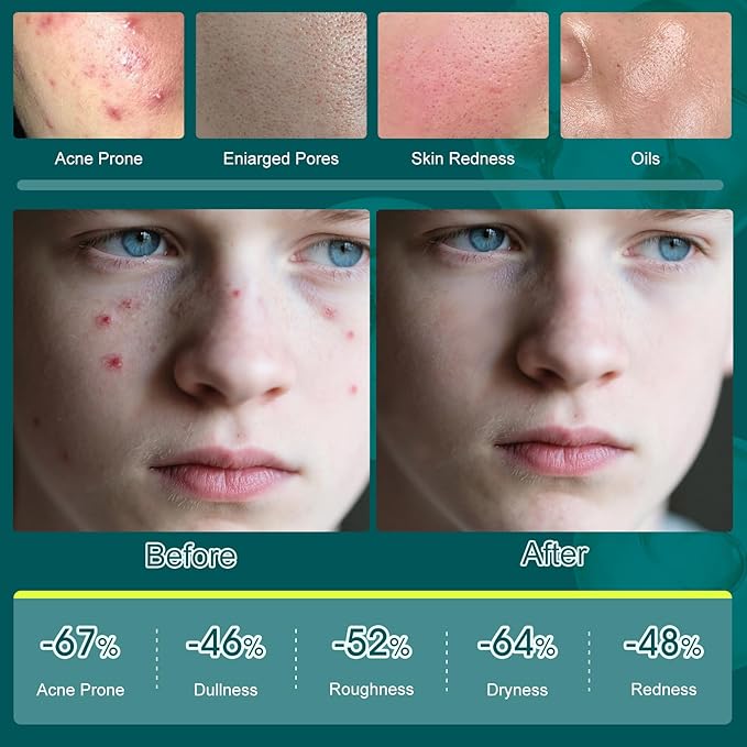 - 【Suitable for All Skin Types】——Acne Skincare Gift Set is great ideal for for all skin types that are prone to breakouts, acne, blackheads, redness, post breakout marks, enlarged pores, oily skin, often stay up late. Tea Tree Essential Oil can help remove acne, blemishes and excess oil, leaving your skin rejuvenated, improving skin elasticity and restoring even and translucent skin texture.