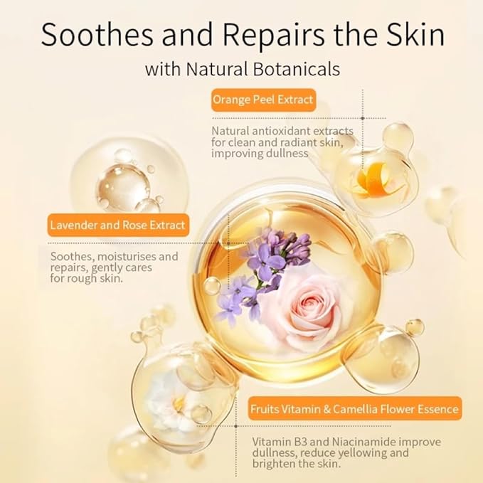 - 🌼GLOWING NOURISHMENT🌼Jam packed with natural-derived extracts such as Tangerine Peels, Lavender, Jasmine, Chamomile, Rosemary, Peppermint, and Rose extracts. these diverse extracts help to rejuvenate the skin while preventing blemishes, are known to fight inflammation, and provide a calming and soothing effect to the skin that is the perfect brightening sheet mask for your skincare routine.
