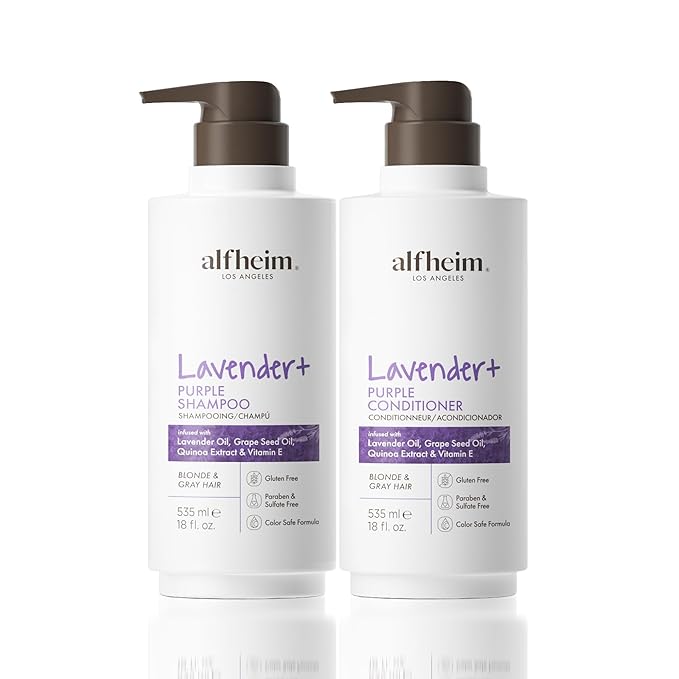 Alfheim Lavender+ Purple Shampoo & Conditioner Set | Anti-Brass & Color-Correcting for Blonde, Platinum & Gray Hair | Hydrating & Nourishing | Enhances Shine & Softness | 18 oz Each