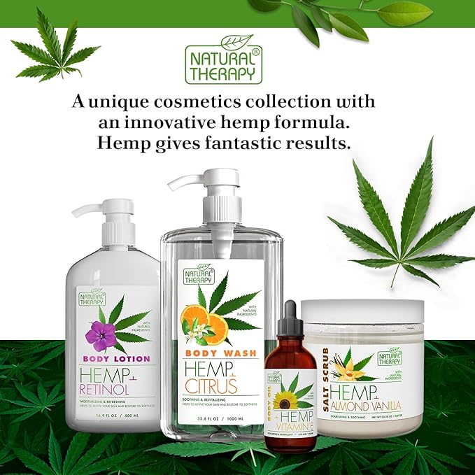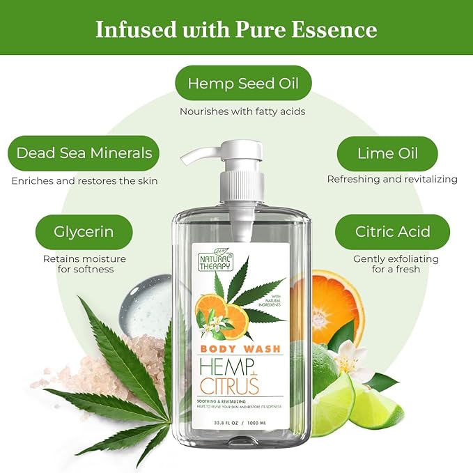 Natural Therapy Body Wash for Women and Men with Hemp & Citrus - Shower Gel Cleanses and Moisturizing Skin - With Dead Sea Minerals Nourish for Body, Pack of 2 (67.6 fl.oz)