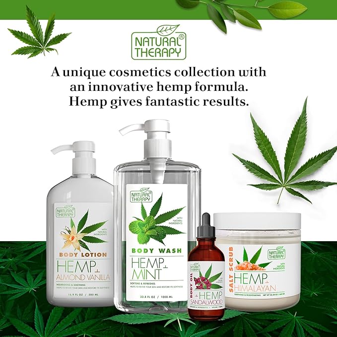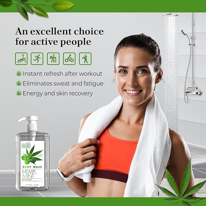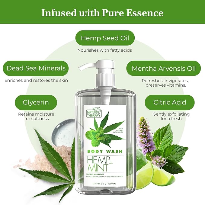 Natural Therapy Body Wash for Women and Men with Hemp & Mint - Shower Gel Cleanses and Moisturizing Skin - With Dead Sea Minerals Nourish for Body, Pack of 2 (67.6 fl.oz)
