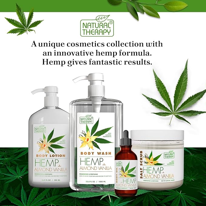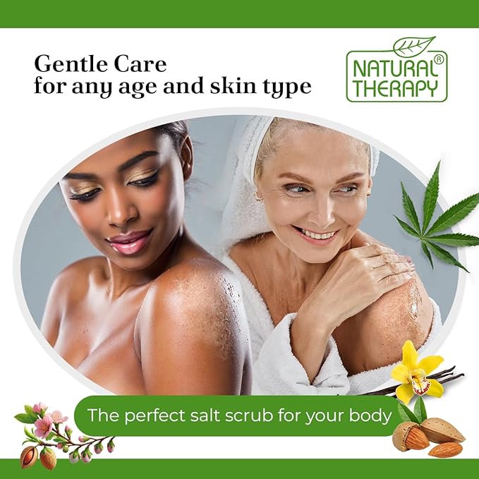 Natural Therapy Hemp & Almond Vanilla Salt Scrub – Exfoliating Body Scrub for Women – Moisturizing and Nourishing Skin – with Pure Oils and Dead Sea Minerals (23.28 Oz)