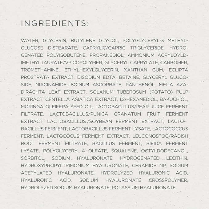 - Active Ingredients : Hyaluronic Acid, Niacinamide, Prebiotics, Probiotics