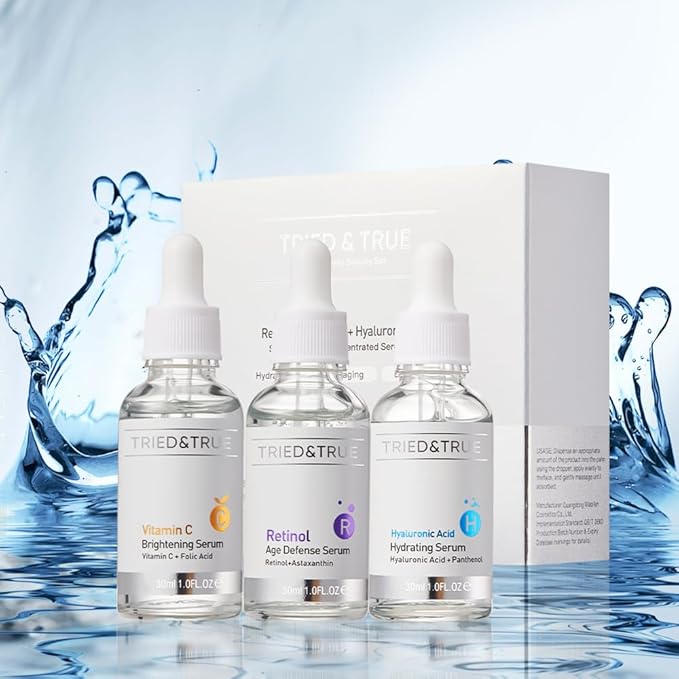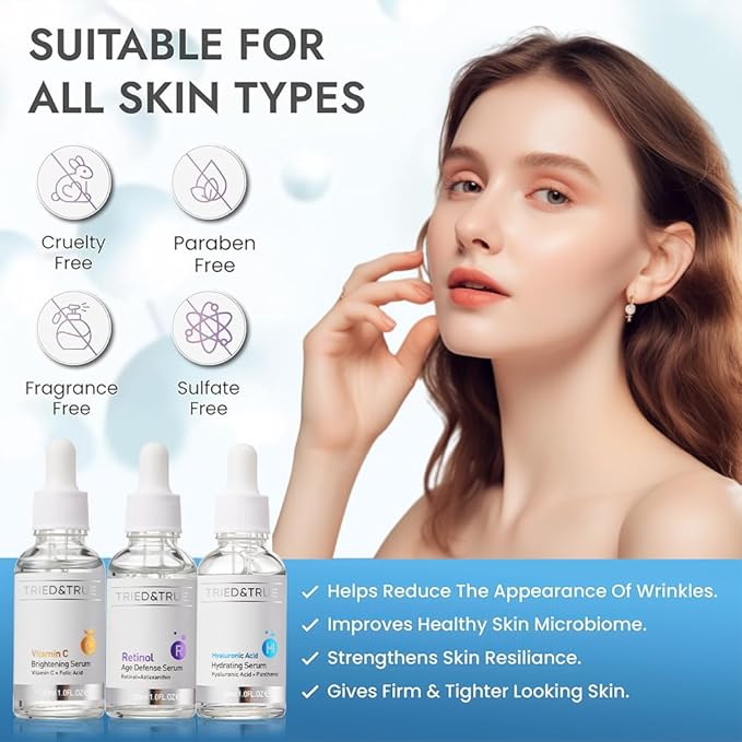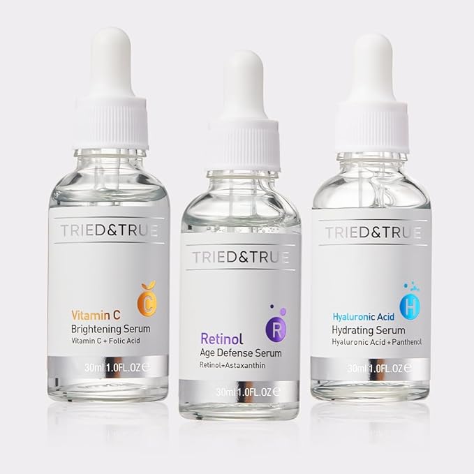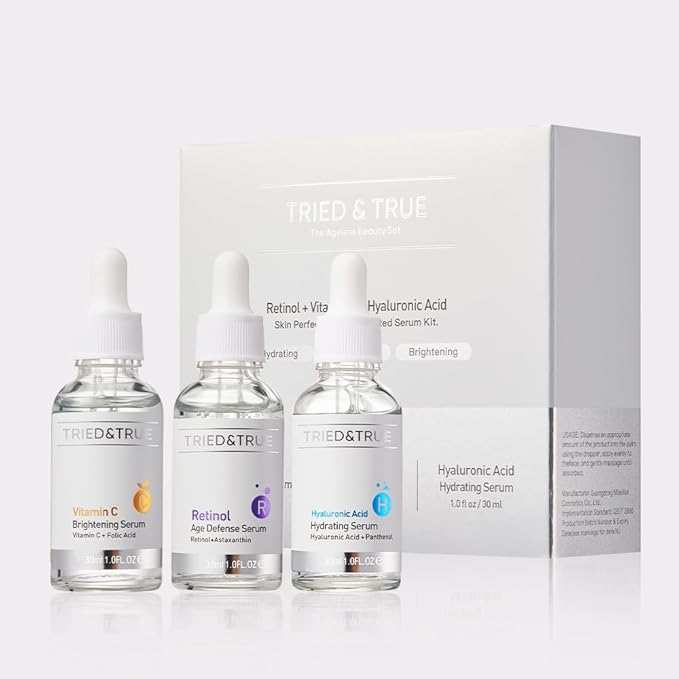 The Ageless Beauty Kit- Retinol Serum, Vitamin C Serum, and Hyaluronic Acid Serum- Skin brightening, anti-aging, skin perfecting kit- 3 Serum Set- TRIED & TRUE