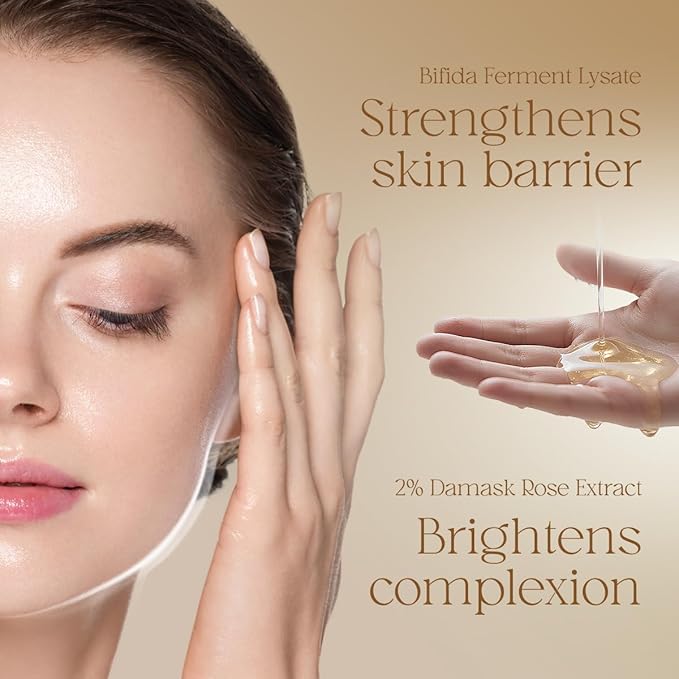 - Revitalizing Radiance & Skin Texture: 24K gold flakes and 2% Bulgarian rose water boosts microcirculation and promote a healthy glow. Bifida ferment refines pores for silky-smooth skin –exudes a natural glow