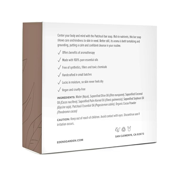 Edens Garden Natural Patchouli Aromatherapy Cold Processed Bar Soap (Made With Essential Oils, Vegan, For Face & Body), 4.4 oz Bar