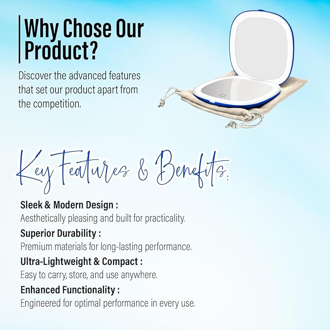 - [Ultra-Portable & Stylish] – Slim, lightweight, and just 4 inches, this pocket mirror easily fits into handbags, making it an ideal travel mirror with light for beauty touch-ups anytime, anywhere..