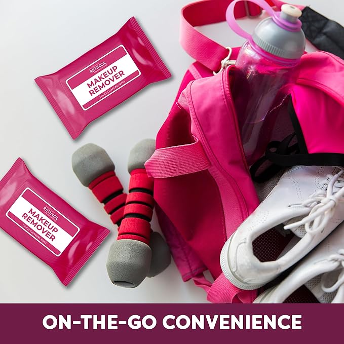 Retinol Individually Wrapped Makeup Remover Wipes, travel essentials for Travel & On the Go, women facial cleansing wipes, remove makeup mascara & sunscreen, with micellar water, 30 single face wipes