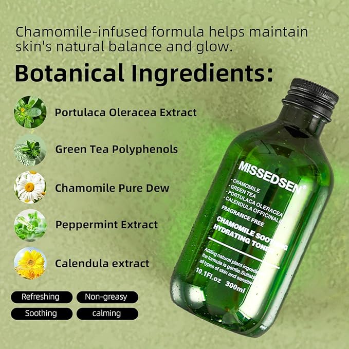 - NATURAL INGREDIENTS: Features chamomile, green tea, portulaca oleracea, and calendula officinalis for gentle and effective skin care