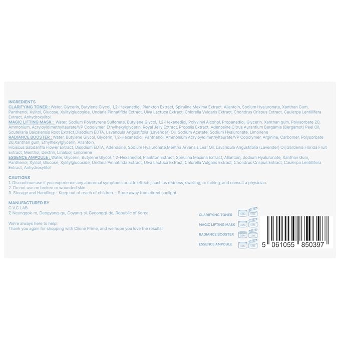 - Comprehensive Care System: Helps address the appearance of wrinkles, supports skin elasticity, and enhances hydration with essence toner, lifting mask, vitamin booster, and clarifying ampoule.