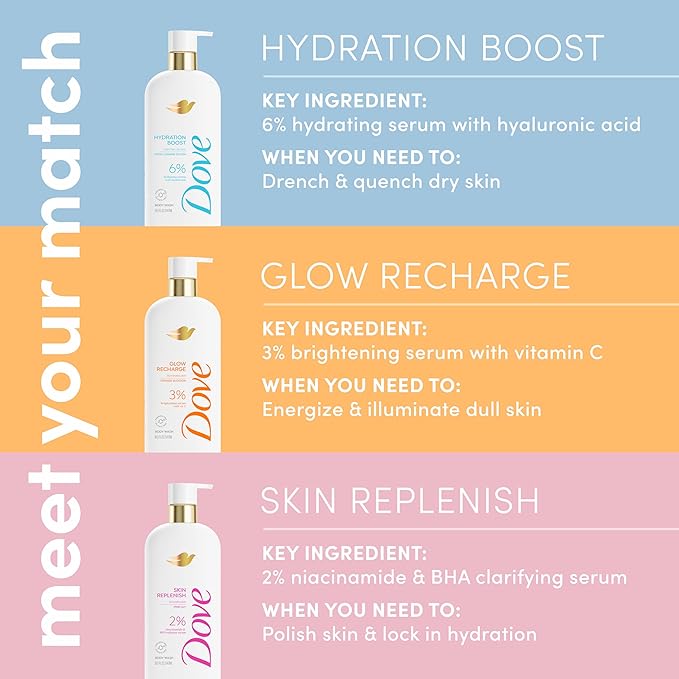Dove Serum Body Wash Skin Replenish smooths skin with Niacinamide & BHA Serum 18.5 Fl Oz
