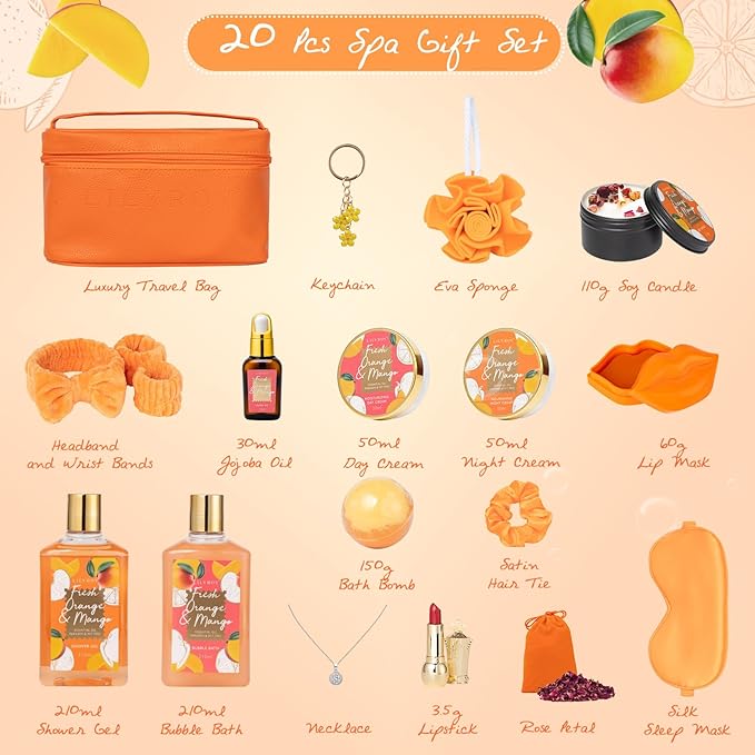 - PERFECT HOLIDAY GIFT SET FOR WOMEN: Leave the ordinary behind when you lavish yourself on the soft, feminine fragrance of fresh ORANGE & MANGO, and make you feel tropical like a holiday. The scent smells fresh
