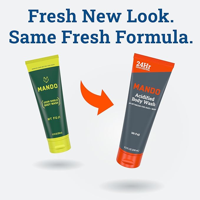Mando Odor Shield Body Wash - 24 Hour Control - Removes Odor Better than Soap - SLS Free, Paraben Free, Skin Safe - 8.5 Ounce (Pack of 2) (Mt Fuji)