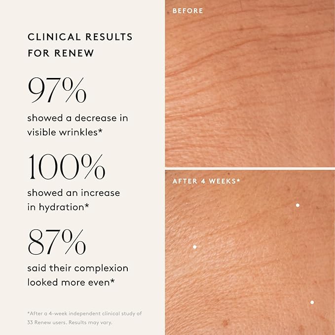 - CLINICAL RESULTS: Renew Resurfacing Night Serum delivers results you can see. In an Independent Clinical Study with Renew users, 97% showed a decrease in the appearance of fine lines and wrinkles, and 100% showed an increase in hydration.* After a 4-week independent clinical study of 31 Illuminate BC+ Brightening Serum users, 94% showed a decrease in the appearance of fine lines & wrinkles, 84% improved visible skin radiance, and 100% showed an increase in hydration.*