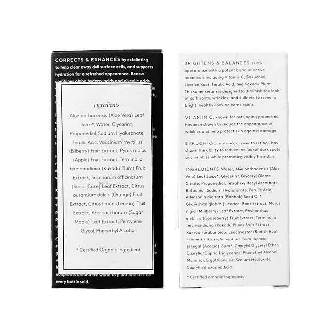 - KEY INGREDIENTS: Potent botanicals known for visible results: Triple-weight Hyaluronic Acid for deep hydration, Glycolic Acids for a visibly smooth tone, and Alpha Hydroxy Acids for enhanced turnover. Bakuchiol is known to reduce the appearance of wrinkles and fine lines. Vitamin C is shown to promote visibly radiant and even skin tone.