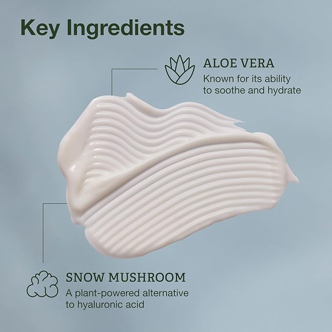 - Plant-Based Power - We enriched this lightweight moisturizer with snow mushroom, a plant-powered alternative to hyaluronic acid and aloe vera, known for its ability to soothe and hydrate.