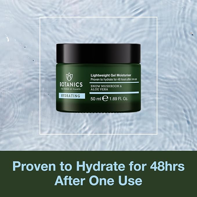 Botanics Lightweight & Hydrating Face Moisturizer for Women & Men - Gel Facial Moisturizer for Dry Skin - Enriched with Snow Mushroom & Aloe Vera - Vegan & Cruelty-Free 48-Hour Hydration (1.69 Fl Oz)