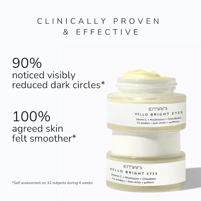 - TARGETED EYE TREATMENT – Brighten, hydrate, and refresh with Emani Hello Bright Eyes, formulated with 8.5% Vitamin C to help visibly reduce puffiness and peptides to smooth the look of fine lines. A clean beauty essential for eyes that look wide-awake and youthful.