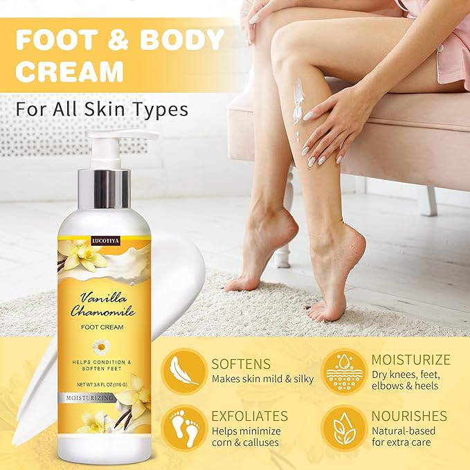 - CONVENIENT & GIFT-READY: Each order includes the complete four-piece set, making it a time-saving choice for your foot care routine. The delightful vanilla chamomile scent makes it a thoughtful gift for friends and family. If you have any issues or are unsatisfied with the product, our customer service team is always here to assist you.
