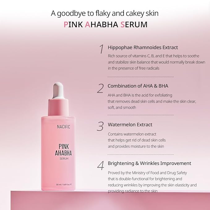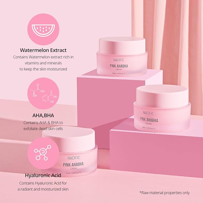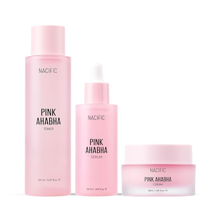 NACIFIC Pink AhaBha Triple Set (Toner 150ml, Serum 50ml, Cream 50ml) AHA, BHA, Watermelon extract Glow Moristurizing Hyaluronic Acid