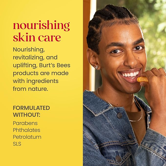 - LIP CARE: Made with vitamin E and responsibly sourced beeswax, the Burt’s Bees lip balm delivers a full 12 hours of moisture and a final hint of peppermint oil for that one-of-a-kind refreshing tingle