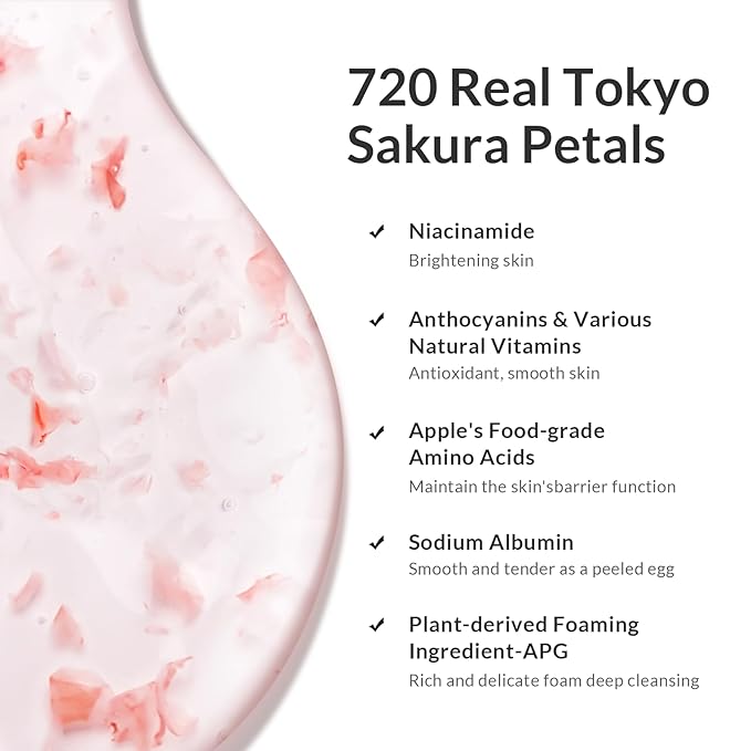 - Visible Sakura Petals in Every Drop - See the beauty inside—real edible-grade cherry blossom petals suspended in a clear, transparent liquid. Delivers a spa-like petal bath with each pump.