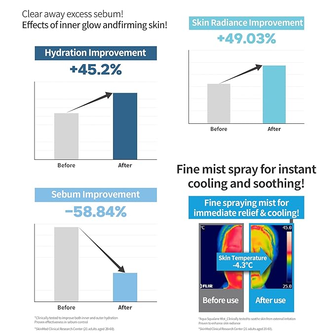 - 💯Proven Results Clinically proven results for hydration improvement, clear away excess sebum, and relief from flaky skin. This formula smooths our your skin texture, giving you cooling & soothing feeling of use.