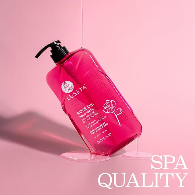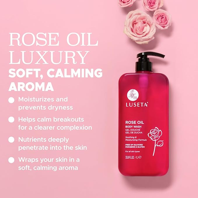 Luseta Rose Oil Body Wash Hydrating Moisturizing Shower Gel Cleansing and Nourishing for Dry Skin for Women & Men Sulfate-Free 33.8oz