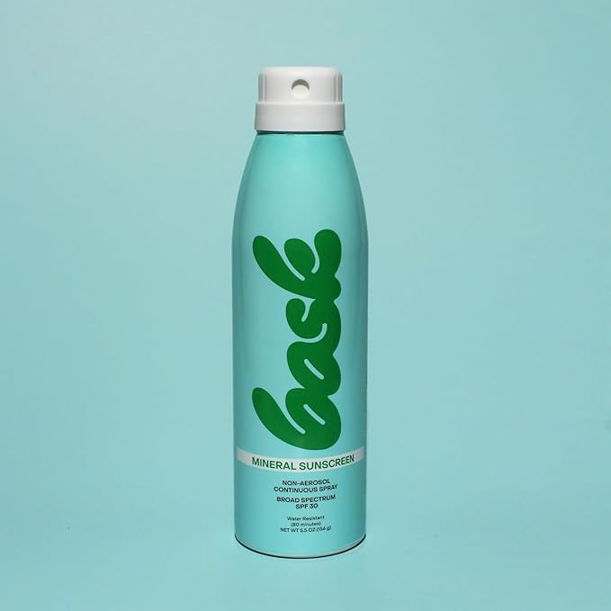 Bask Suncare SPF 30 Mineral Sunscreen Spray - Fragrance Free, Non-Aerosol, Reef Safe, Broad Spectrum UVA/UVB Protection, Dermatologist Recommended, Lightweight & Fast-Absorbing, 5.5 oz