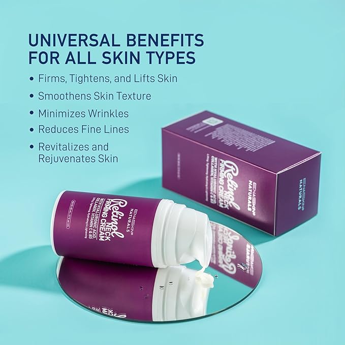Retinol Neck Firming Cream: Advanced Face Tightening and Lifting Cream with Hyaluronic Acid, Collagen and Vitamin - Tightening Wrinkles, Firming Sagging Skin on Face, Neck, Décolleté - 2.7 Oz