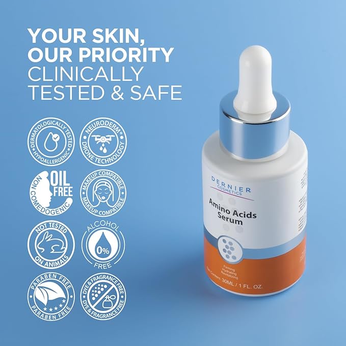 - AMINO ACID COMPLEX FOR FIRMNESS AND HYDRATION – Formulated with a 1% Amino Acid Complex, this serum enhances collagen production, hydrates, and rejuvenates the skin, visibly reducing wrinkles and improving skin texture.