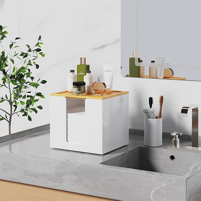 - Idea Choice for Bathroom & Vanity: This Face Towel Holder with ample storage space and a removable bamboo lid, the box is great for organizing facial towels and makeup essentials, making it a perfect addition to your bathroom or vanity.