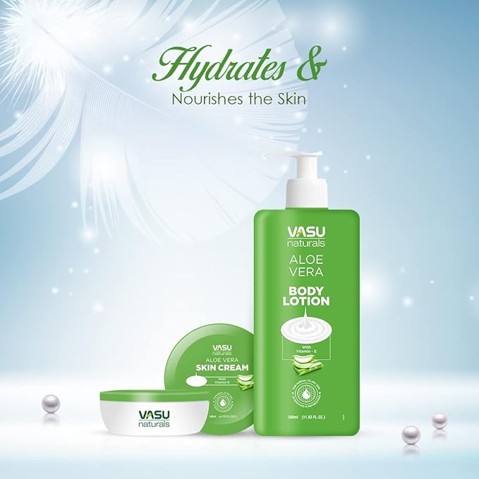 Vasu Naturals Aloe Vera Body Lotion with Vitamin E for dry skin, Lightweight face moisturizer, hand cream for extremely dry skin, lotion for women, lotion for men -11.83 fl oz each (Pack of 2)