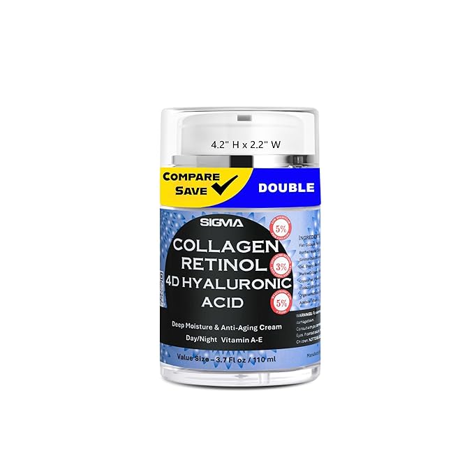 Anti-Aging Face Cream | $6.47/oz | 5% Marine Collagen 3% Retinol 5% 4D Hyaluronic Acid | Wrinkle Firming Moisturizer for Face Neck | Professional Strength | Jumbo 3.7oz | 1 Finger Cream Dispenser
