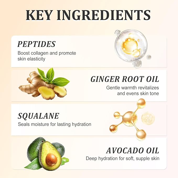 - Upgraded for Comfort & Results: Now with ginger root oil, this firming cream for loose skin gently warms as it smooths and tightens the belly, thighs, and arms. Targets stretch marks and sagging skin—without the intense heat. Just a comforting, skin-loving glow, like your favorite flat tummy cream