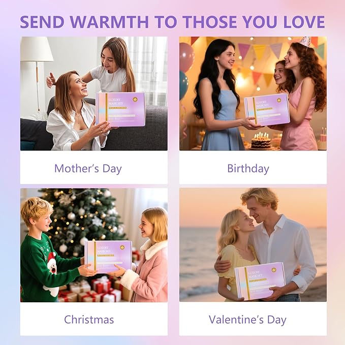 - Self Care Women Gift Set: Beautifully packaged, this facial sheet & colleagen masks skin care pack is perfect gift ideal for Mother's Day, Birthday, Christmas, Valentines, New Job, New Baby, Anniversary, Bridesmaid, Bridal Shower, Housewarming, Wife, Mom, Grandmother, Sister, Daughter in law, Best Friend, Coworker, Cousin, Aunt, Niece, Teacher, Sister in law, Employee or Girlfriend. Our gift boxes are the perfect choice for putting a smile on their faces. So, what are you waiting for? Just get this luxury gift