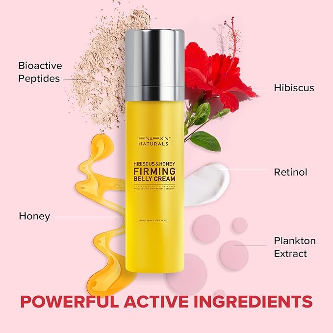 Enaskin Naturals Belly Firming & Skin Tightening Cream — Hibiscus and Honey Cellulite Lotion for Stomach, Thighs & Butt — Moisturizing & Lifting Body Lotion for Women, 100ML
