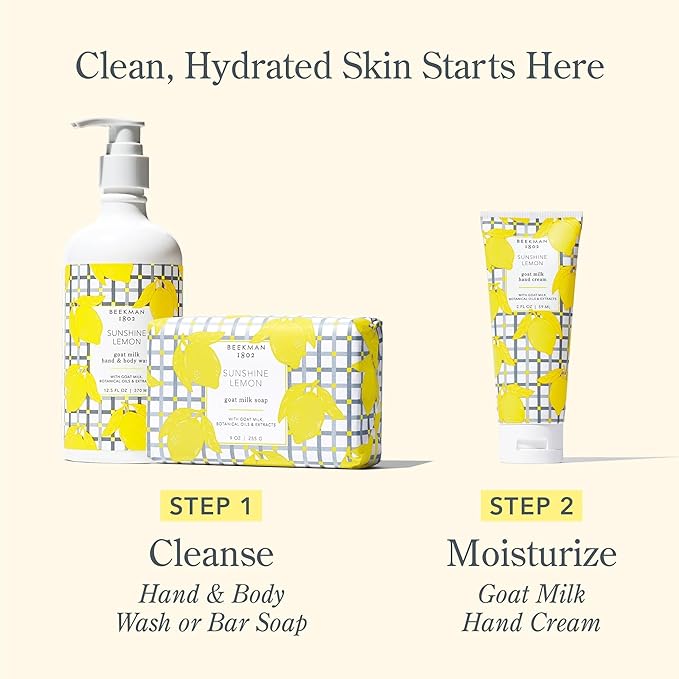 Beekman 1802 Goat Milk Body Soap Bar, Sunshine Lemon - Scented - 3.5 oz - Nourishes, Moisturizes & Hydrates - 100% Vegetable Soap with Lactic Acid - Good for Sensitive Skin - Cruelty Free