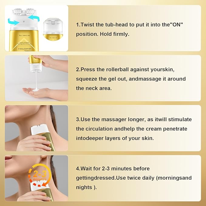 - ❤️【Neck Firming Cream with Dual-roller Balls】The design of the dual roller massage balls, while infusing the energy of AH-8, can conform to the curves of the neck, precisely massage the neck, effectively promote circulation, and rapidly reduce neck edema. With continuous use, it can not only loosen up the neck muscles but also optimize the mechanical structure of the neck, truly freeing your hands and bringing a new professional-grade neck care experience.