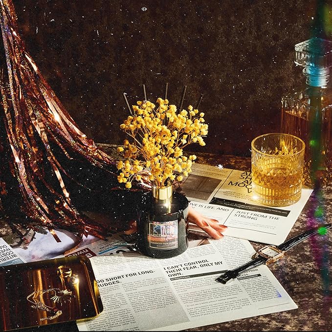 COCORRÍNA Reed Diffuser - Midnight New York 6.7 Fl.oz Reed Diffuser Set with 8 Sticks & Preserved Baby's Breath, Reed Diffuser for Home Bathroom Shelf Decor