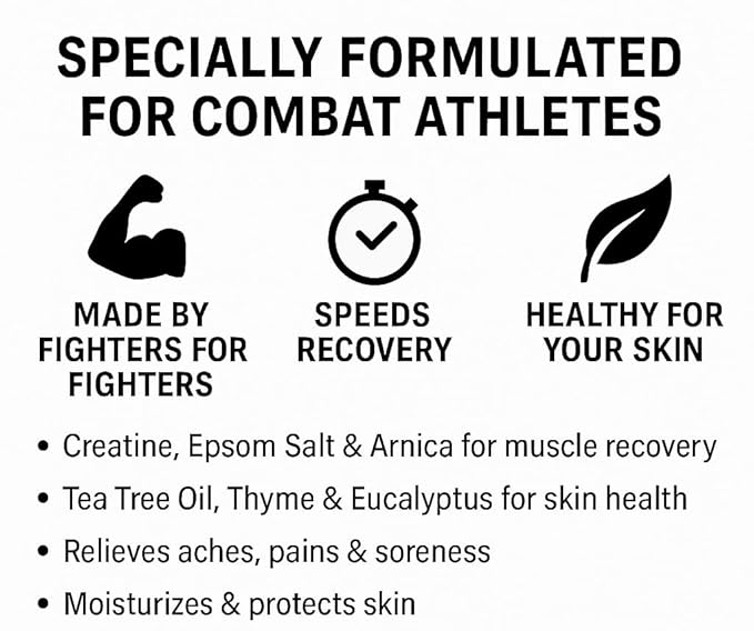 - SPECIALLY FORMULATED | Created by fighters for fighters. We know what it's like to feel beat up during training. We also know how important proper skin maintenance is to keep you training. That's why we were able to create the perfect formula via trial and error over a span of many years to provide the ultimate recovery routine.