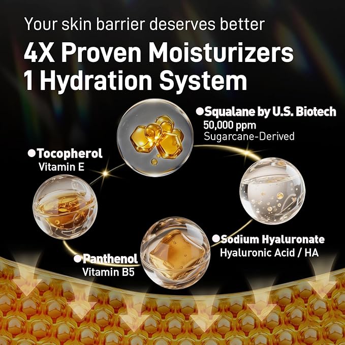 - INTENSE HYDRATION MATRIX WITH HIGH SQUALANE: 50,000 ppm Squalane, multi-weight Hyaluronic Acid, Panthenol, and Aloe Vera Leaf Water lock in 48-hour moisture, repair barrier, and plump skin for dewy, resilient hydration.
