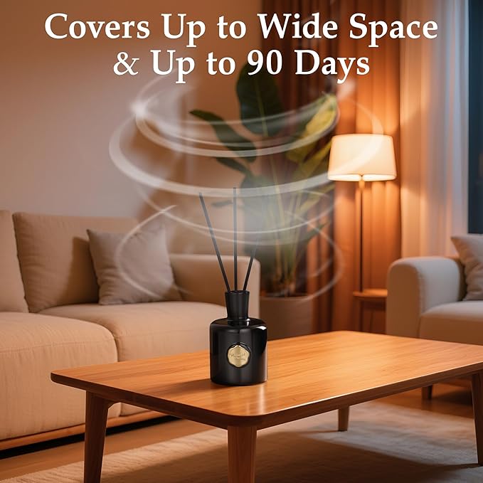 - Decorative & Functional:This reed diffuser doubles as home décor while helping to minimize everyday odors from cooking, pets, or closed spaces. Its modern black bottle blends effortlessly with bathroom, kitchen, office, or living room décor, it enhances your space with both fragrance and style
